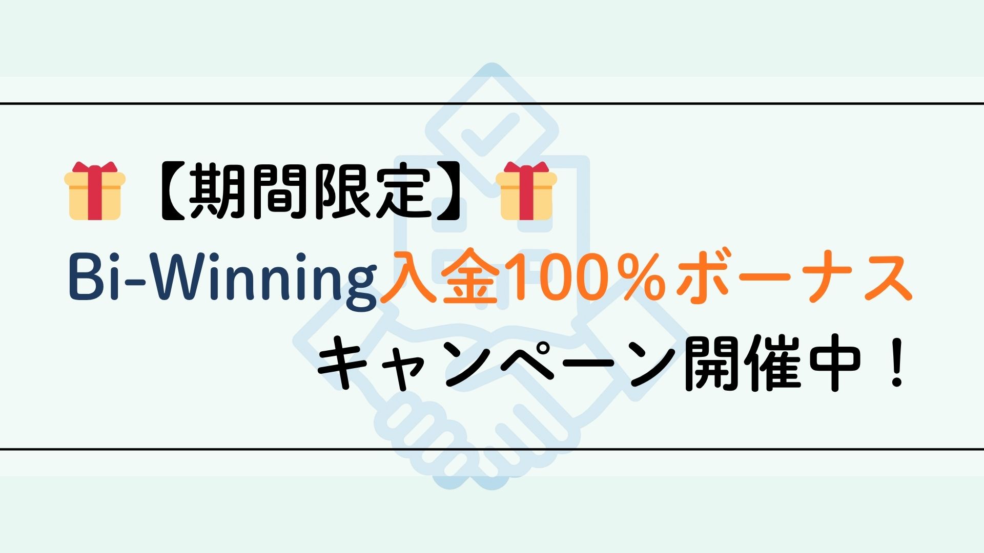 今だけ!私のサイト限定で、Bi-Winningの初回入金額に対して+100%のボーナスがプレゼントされます!